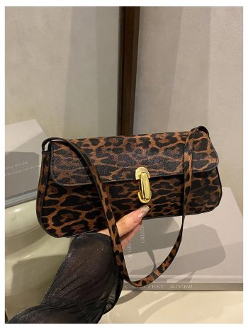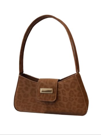 Brown leopard print buckle shoulder bag