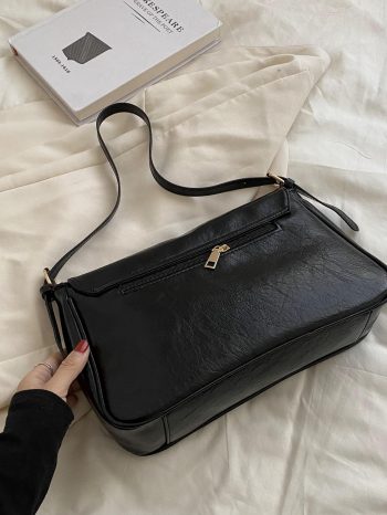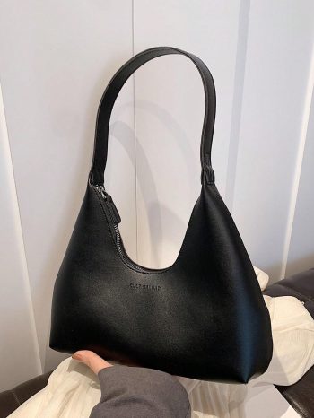Black Minimalist Slouch Shoulder Bag