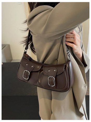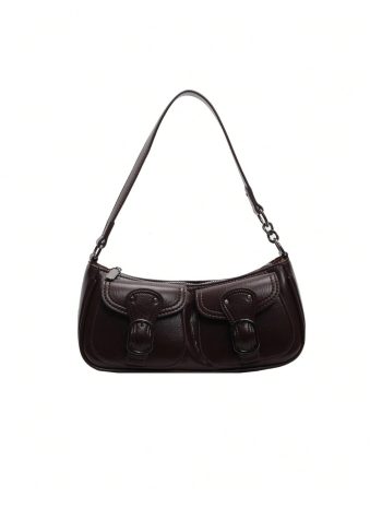 Dark Brown Baguette-Shaped Shoulder Bag