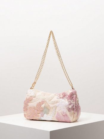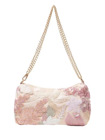 Pink Floral Tapestry Shoulder Bag with Chain Strap