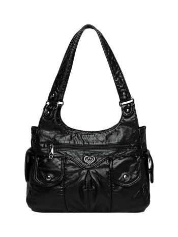 Black shoulder bag with zippered pocket