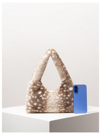Brown Spotted Faux Fur Shoulder Bag