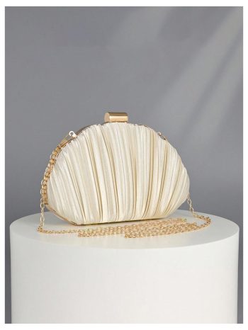 Ivory-colored pleated clutch evening bag