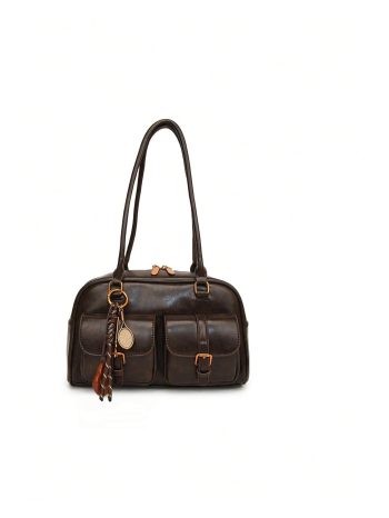 Vintage brown faux leather shoulder bag