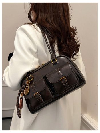 Black Vintage Multi-Pocket Shoulder Bag
