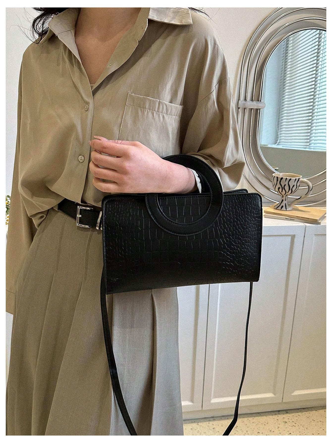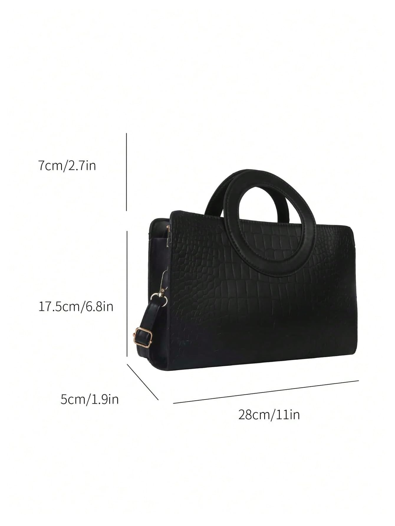 Material: Made of faux leather with a crocodile-embossed texture, this handbag offers a sleek, polished look that is durable and easy to care for in daily use.
