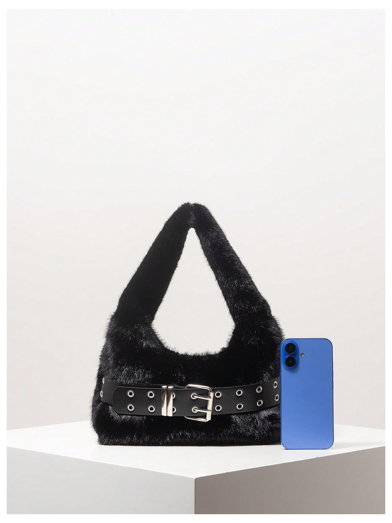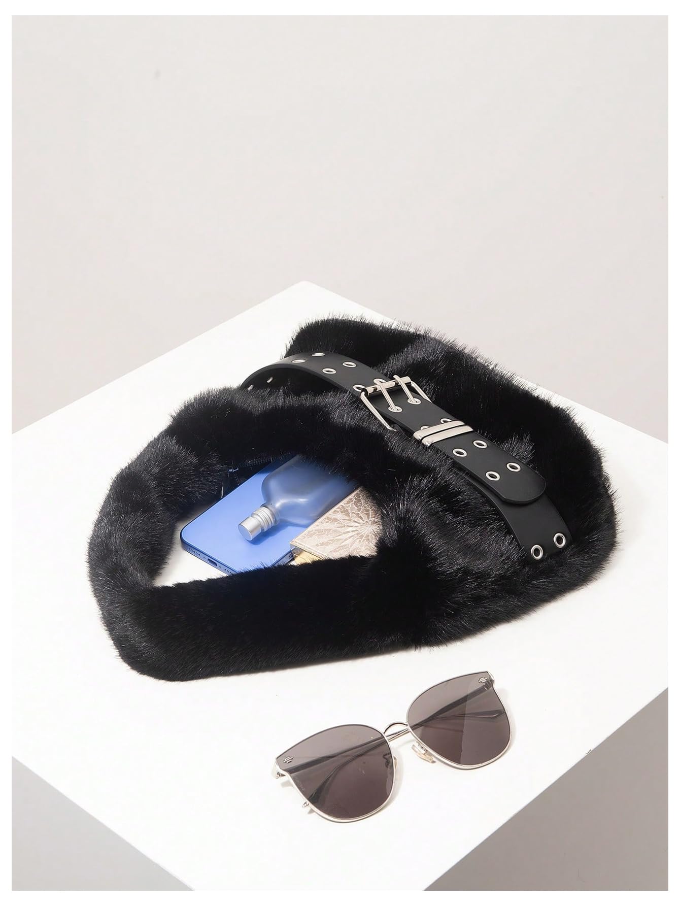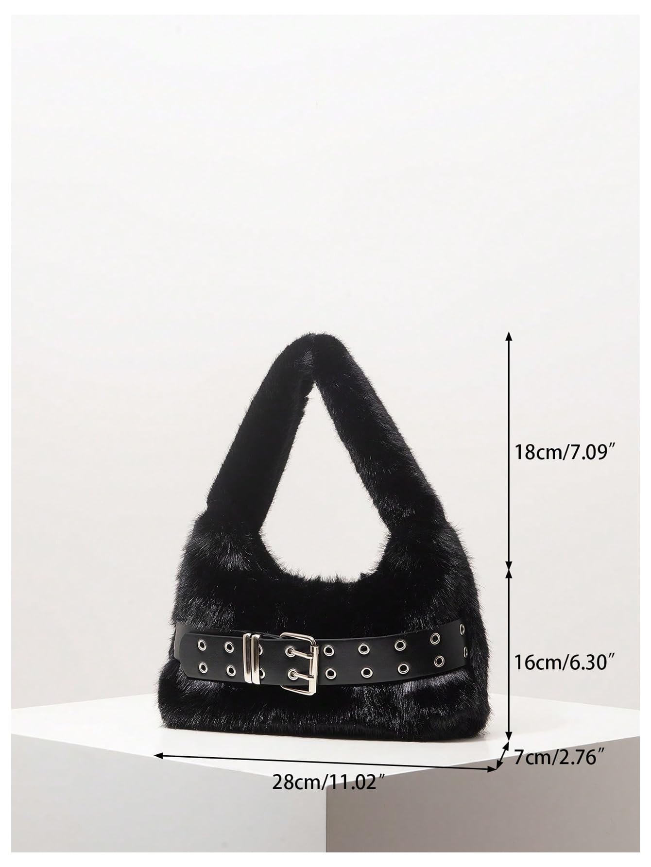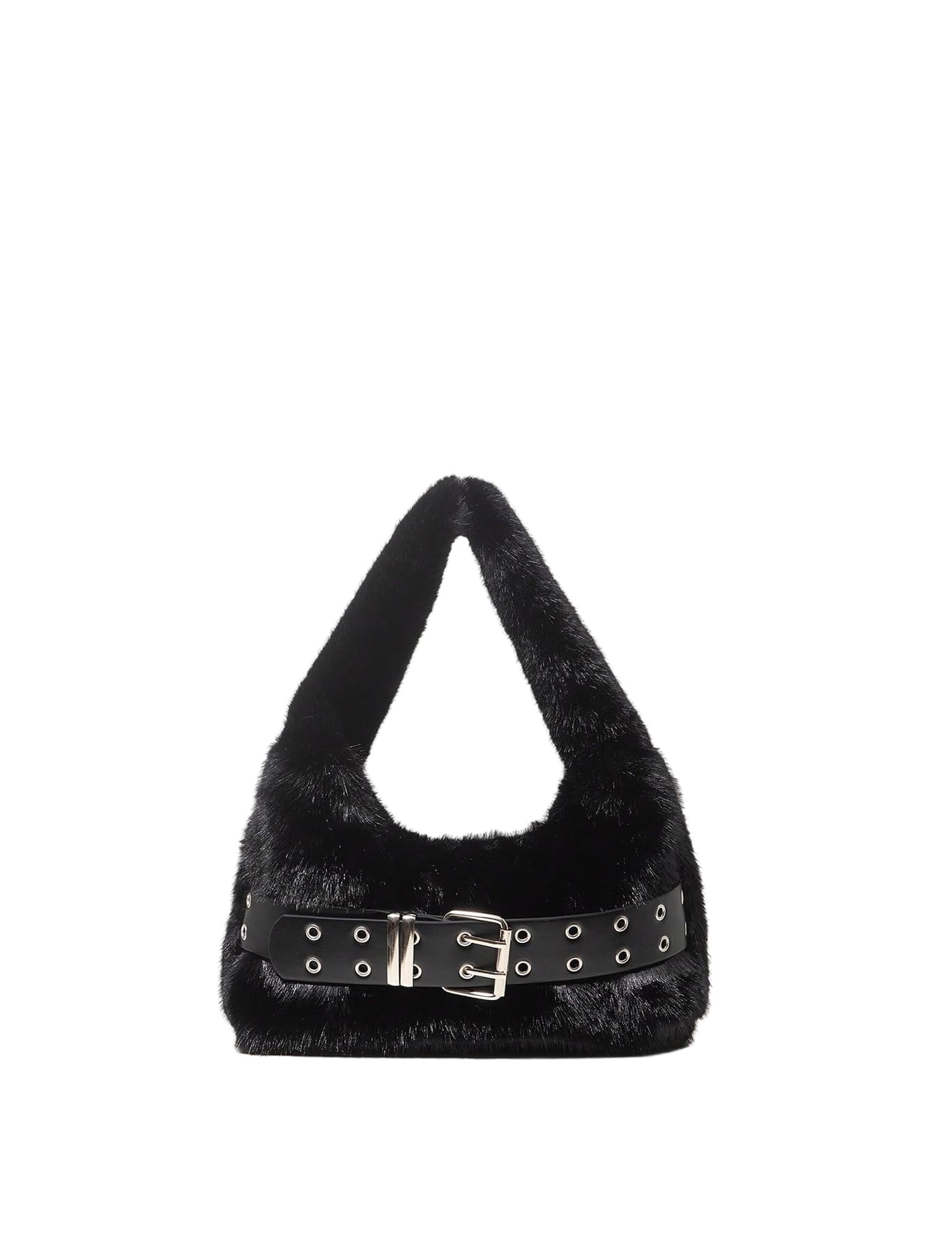 Material: Made with a soft faux fur exterior, this shoulder bag has a plush texture that gives it a cozy yet edgy fashion look.