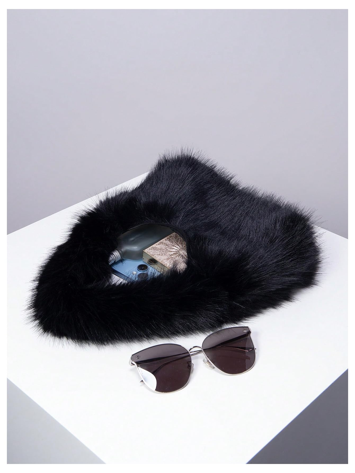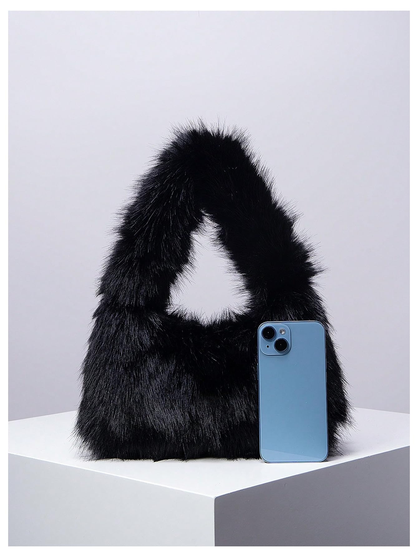 Design: Featuring a minimalist underarm silhouette, this bag combines a playful fuzzy finish with a compact shape for a fashionable statement piece. The soft structure makes it look relaxed yet chic.