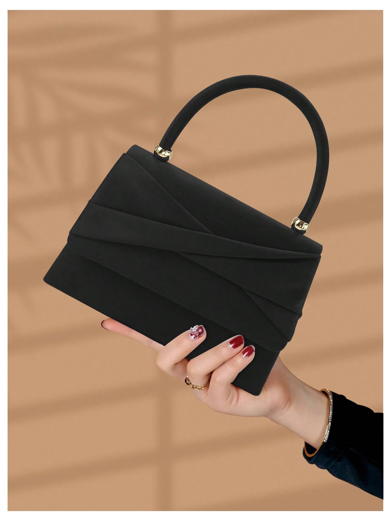 Be the first to review “Black Pleated Top Handle Evening Bag”