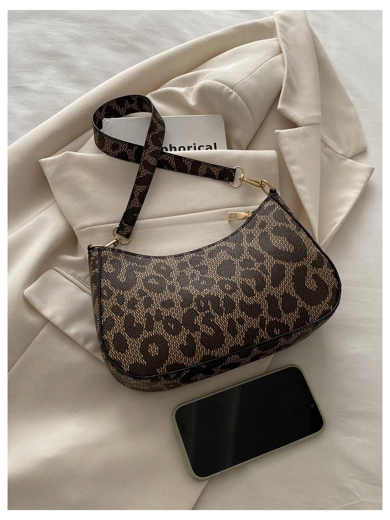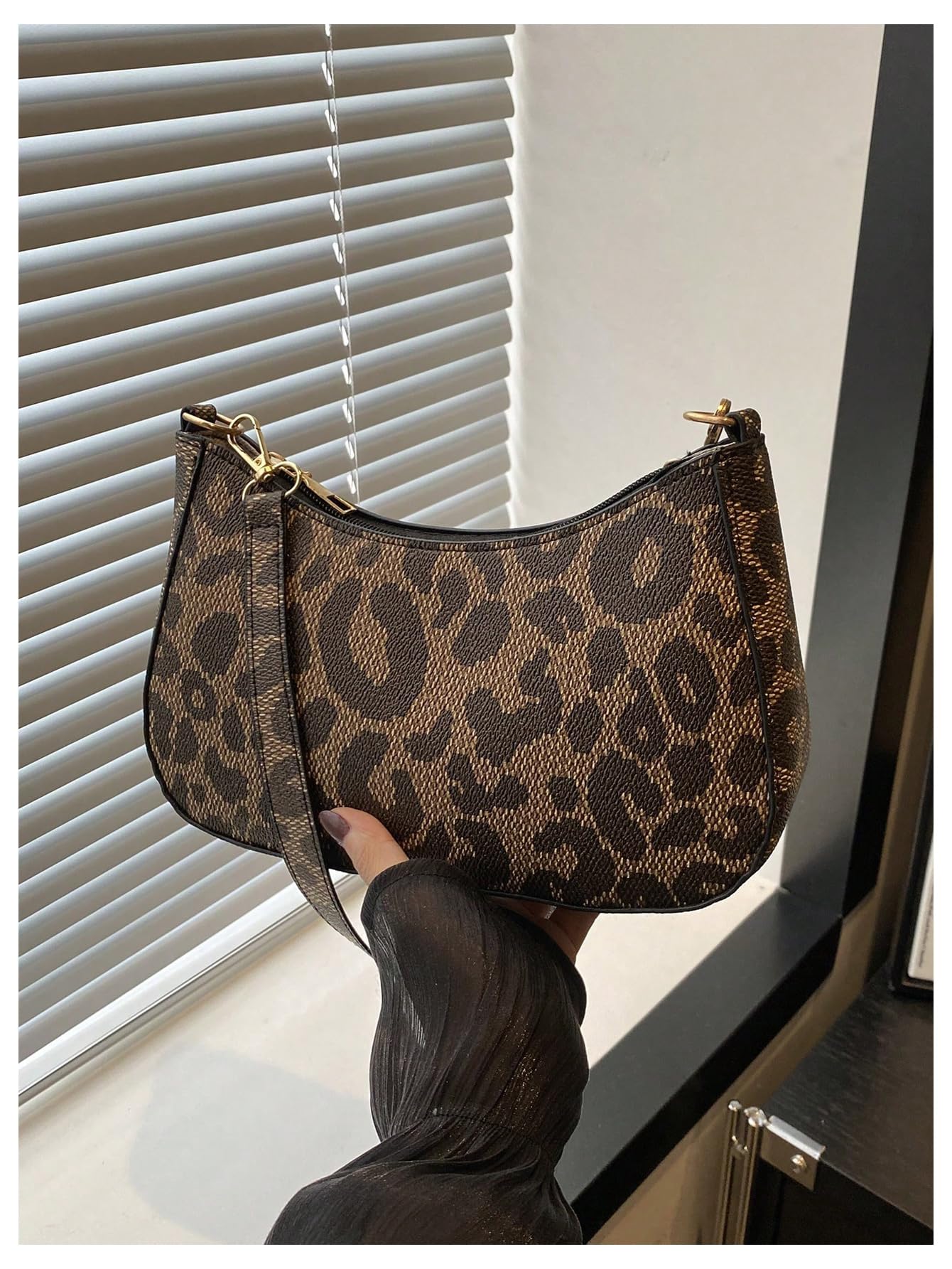 Material: Made with a textured faux leather-look exterior, this shoulder bag features an allover brown leopard print that gives it a bold and fashionable style.