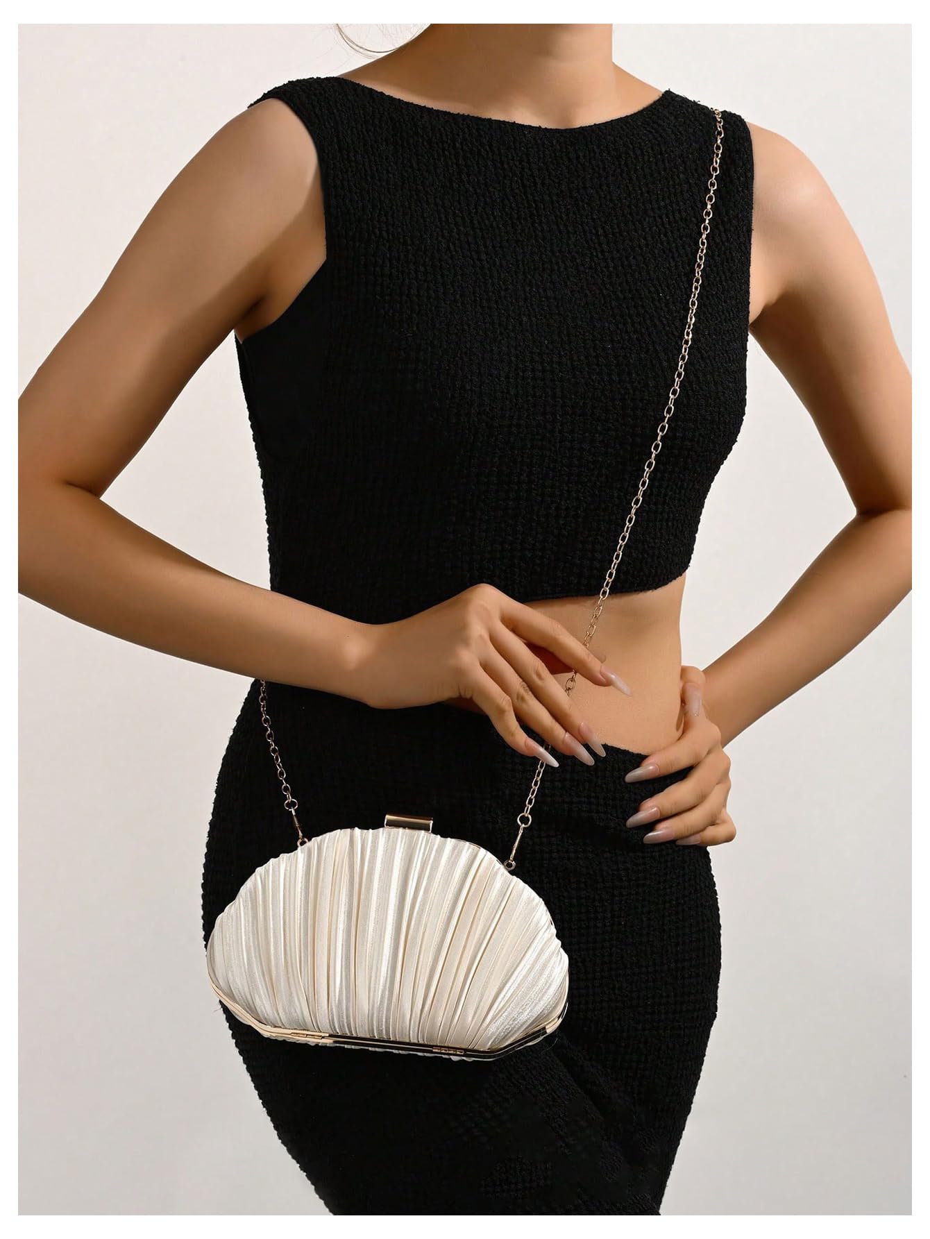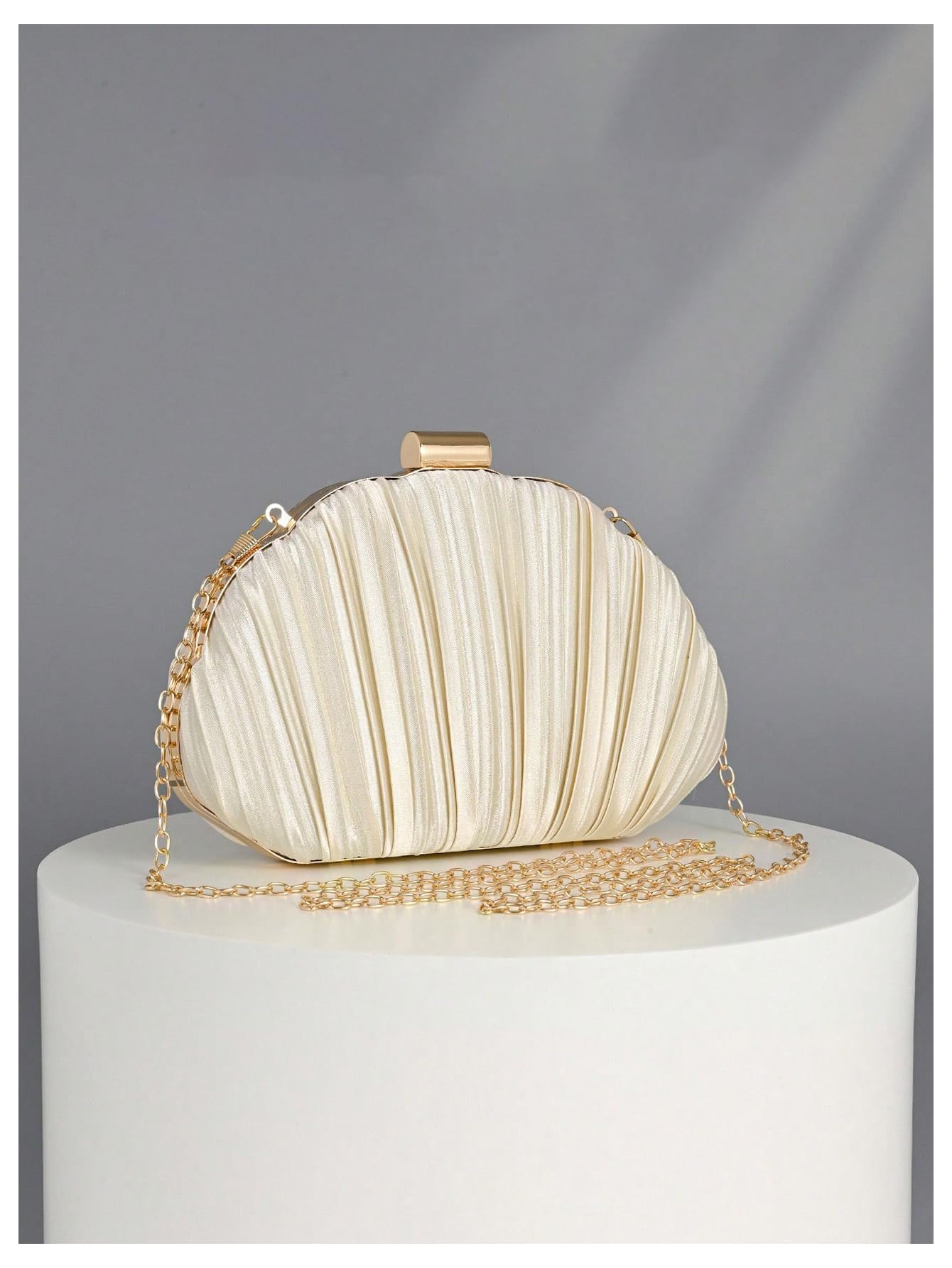 Design: Designed in a shell-inspired silhouette, this bag is detailed with allover pleated texture for a graceful and sophisticated look. The structured shape gives it a polished appearance that stands out beautifully.