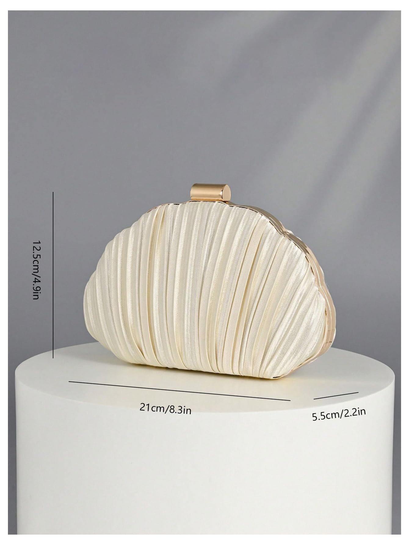 Size: Approx. 21 cm / 8.3 in (L) × 5.5 cm / 2.2 in (W) × 12.5 cm / 4.9 in (H). Suitable for carrying small occasion essentials such as your phone, cards, keys, and lipstick.