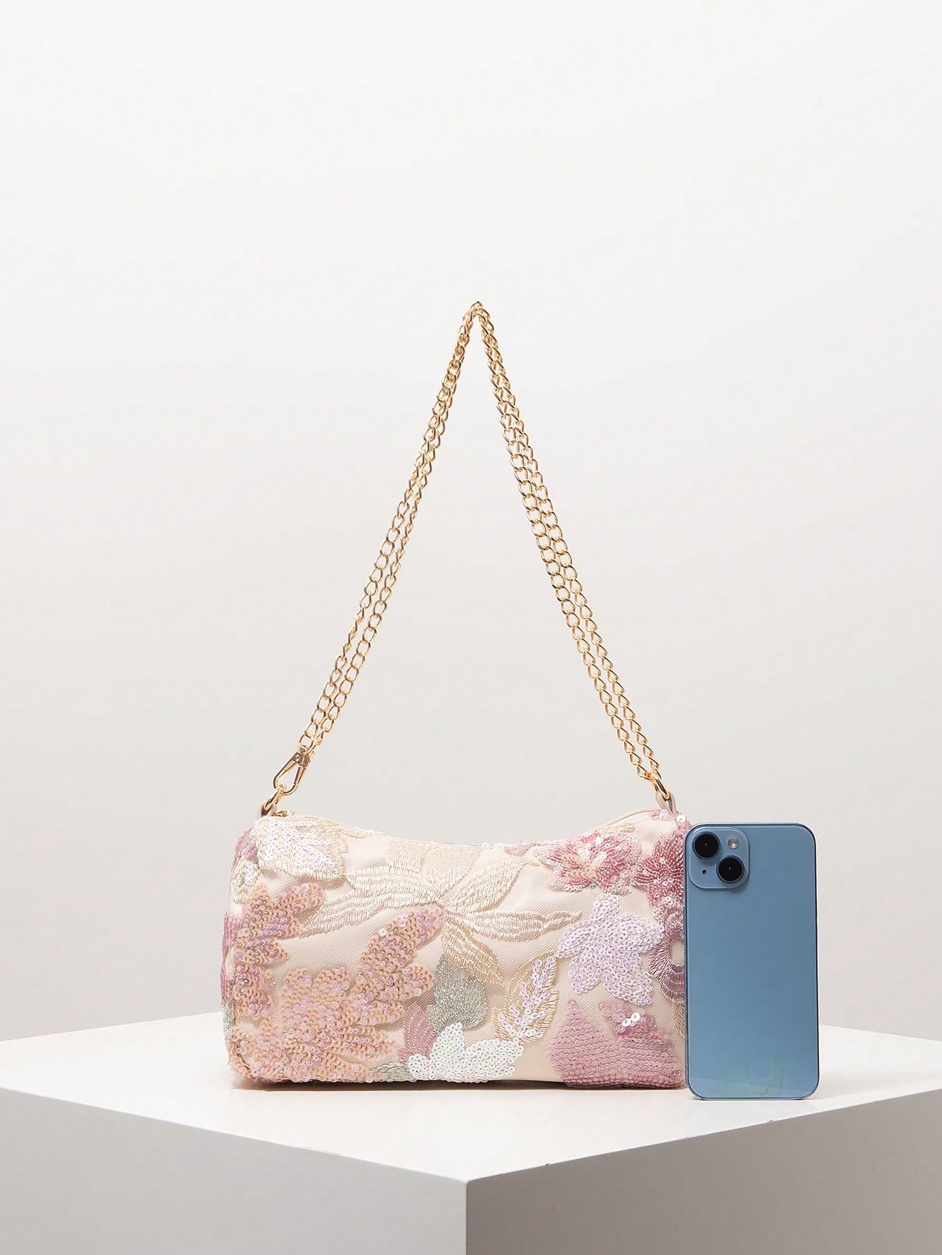 Design: The bag is decorated with pink and pastel flower motifs, giving it a vintage-inspired charm. The softly structured silhouette creates a graceful shape that works beautifully for both day and evening styling.