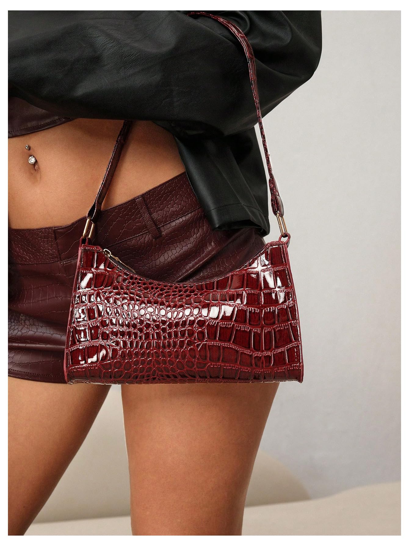 Material: Made of faux leather with a glossy crocodile-embossed texture, this shoulder bag offers a bold, polished look that stands out easily.